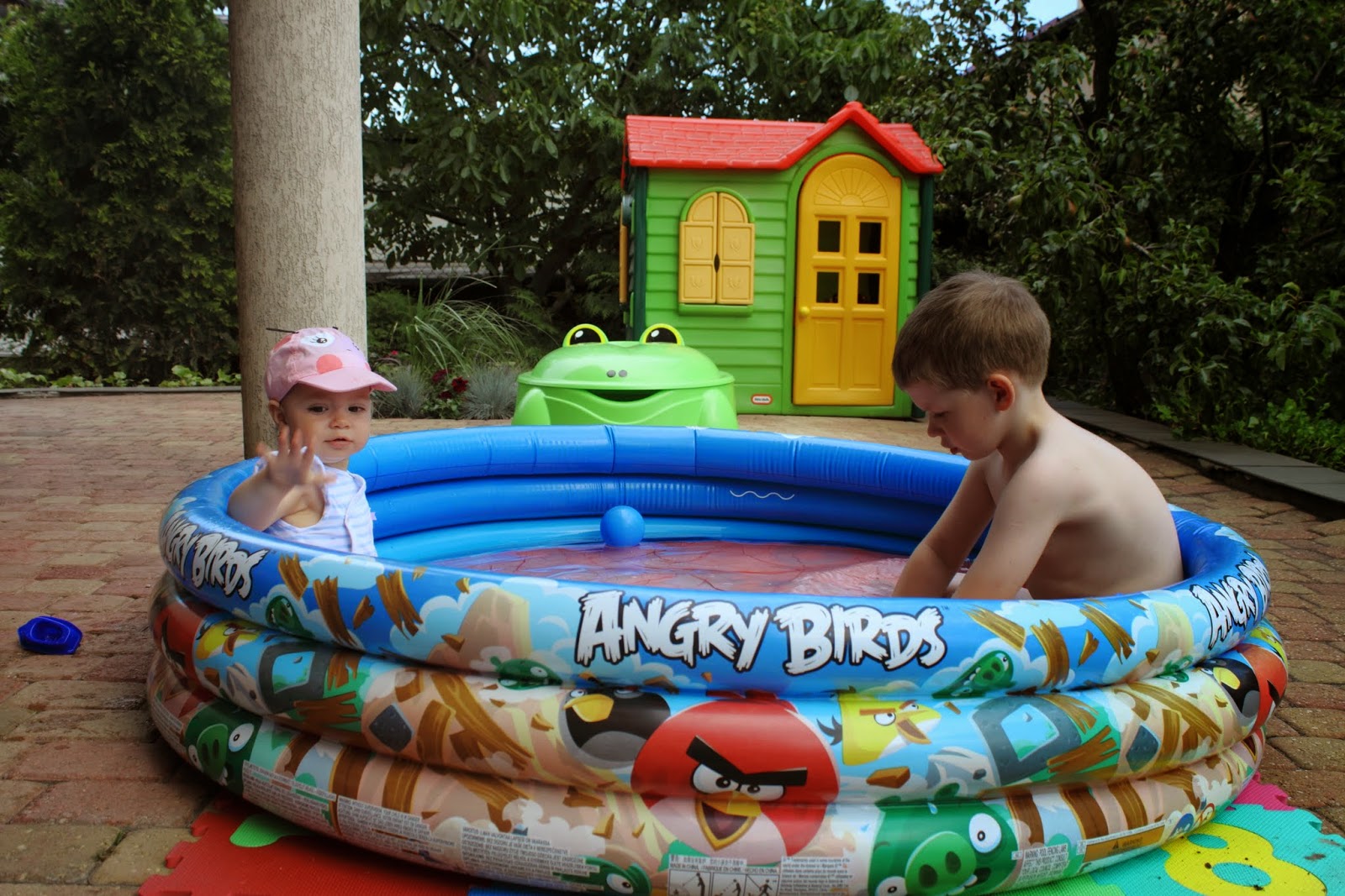 But on Monday... Oh, yes. They did play in the pool on Monday. And on Tuesday as well. And on Wednesday... Since Monday they've been playing in the pool every day. Except for today. But they had other things to do. That is not important. I should shush now... So just see for yourselves how much good can a pool do in the lives of two kids on a hot summer day ;)